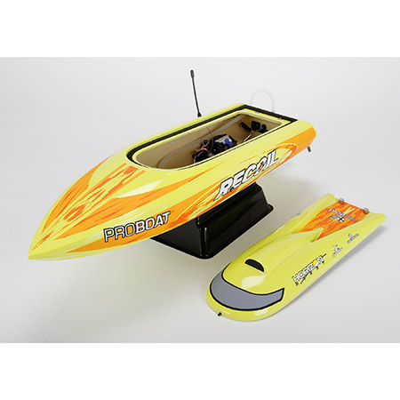 Push the limit of RC boating to the edge with the Pro Boat® Recoil® 26 Deep-V. This dynamic competitor delivers mayhem inducing momentum thanks to a 2100Kv brushless motor and 3S compatible 60-AMP ESC for 30+ MPH of wake-inducing excitement. Best of all, you can drive with the Recoil 26 with reckless abandon thanks to a revolutionary self-righting hull that will never leave you “up a creek without a paddle”. If you do ever go belly-up, returning the Recoil 26 to a race ready position is as easy as punching the accelerator. Get your Recoil 26 and experience all of the fun of Deep-V boating without fear.